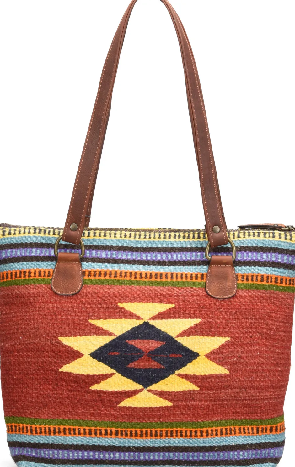 Crafted With Wool Hand-Dyed And Loomed By Skilled Artisans, This Unique Blanket Motif Tote Is A Born Original.